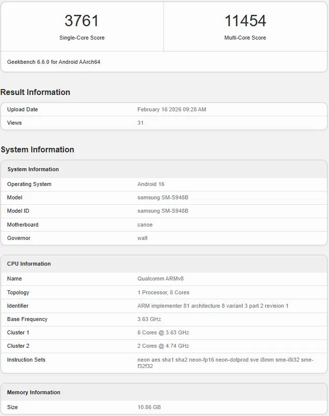 Warum stabile Werte so wichtig sind: Frühere Benchmark-Leaks zeigten noch deutliche Schwankungen zwischen den Tests. Jetzt liefert das Gerät wiederholbar hohe Zahlen, und das ist ein ziemlich klares Zeichen dafür, dass die Firmware finalisiert ist und Samsung die letzten Optimierungen abgeschlossen hat.