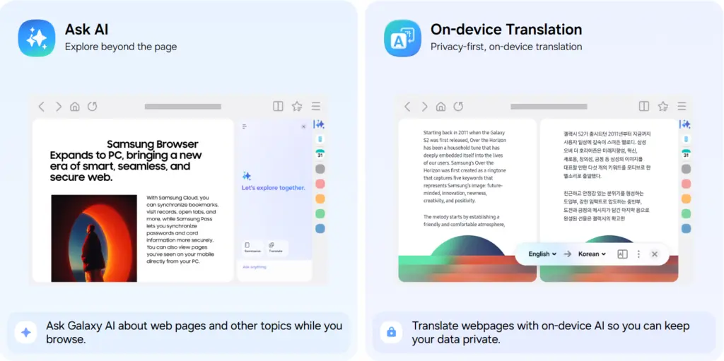 Keine Chrome-Konkurrenz also, sondern ein Bindeglied für dein Samsung-Ökosystem. Samsung-Smartphone plus Windows-PC bedeutet: nahtlose Geräte-Übergänge, einheitliche Authentifizierung über Samsung Pass.