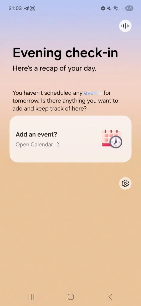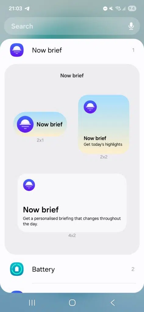 In ersten One UI 9 Testversionen zeigt das Now Brief Widget jetzt dynamische Farbverläufe. Abends wechselt es von Blau zu Orange. Beim Öffnen kommen hellere Darben dazu, die höchstwahrscheinlich mit der Tageszeit rotieren. Kontext-basiertes UI-Design statt statischer Farben ist das also.