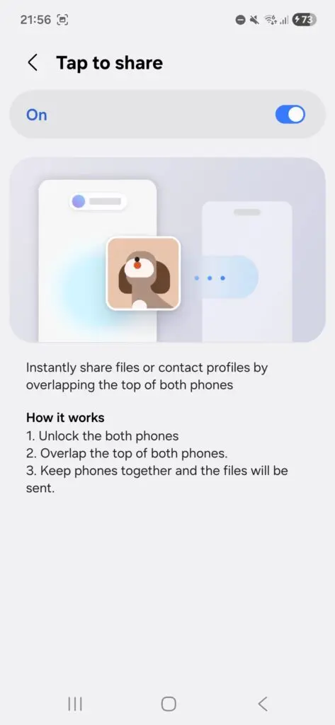 Die Kollegen von SammyGuru konnten jetzt eine eine neue Version von Quick Share testen, die die Tap to Share-Funktion zeigt. Man kann deutlich erkennen, dass noch am Layout gearbeitet wird und es sich somit um eine sehr frühe Version handelt. Aber seht selbst: